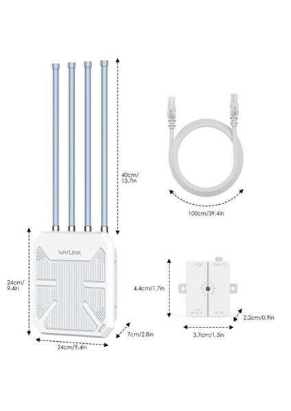 - Uzunluk: Antenler - 40cm / 15.7in; Ethernet Kablosu - 100cm / 39.4in; Güç Adaptörü Kablosu - 130cm / 51.2in
