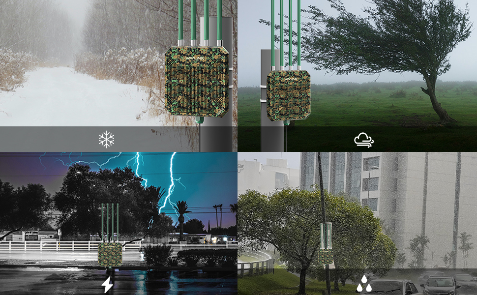 WN573HX3, dış mekan kullanımı için özel olarak tasarlanmış yüksek performanslı bir dış mekan yönlendirici / AP / daha iyi: Robus hava koşullarına dayanıklı kasa ve 15kV ESD koruması, zorlu dış mekan koşullarında sürekli çalışma ve istikrarlı bağlantı sağlar; 4 x 8dBi omni yönlü fiberglas boru antenleri, yüksek mukavemet ve yüksek hassasiyete, uzun servis ömrüne ve mükemmel kablosuz performansa sahiptir; IEEE 802.11 ax/ac / a/g/g73Mbps + 5GHz 2402Mbps; MU-MIMO ve Iğneleme teknolojisini destekler ve 128 cihaza kadar daha geniş bir aralıkta aynı anda bağlanmalarını sağlar.