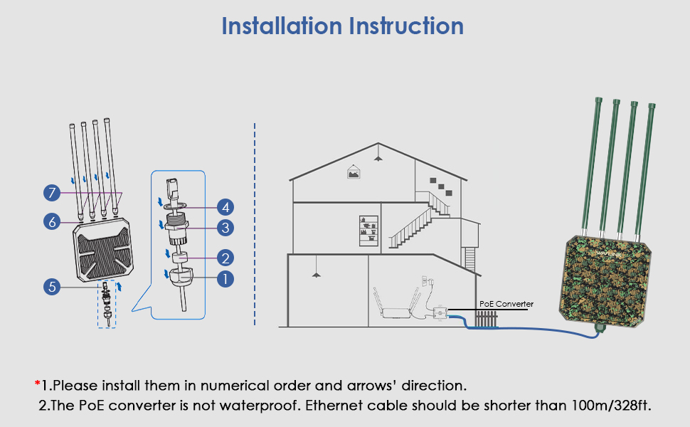 3Daha iyi performans için lütfen ürünü yerden 2-3 metre yukarıda yükleyin.